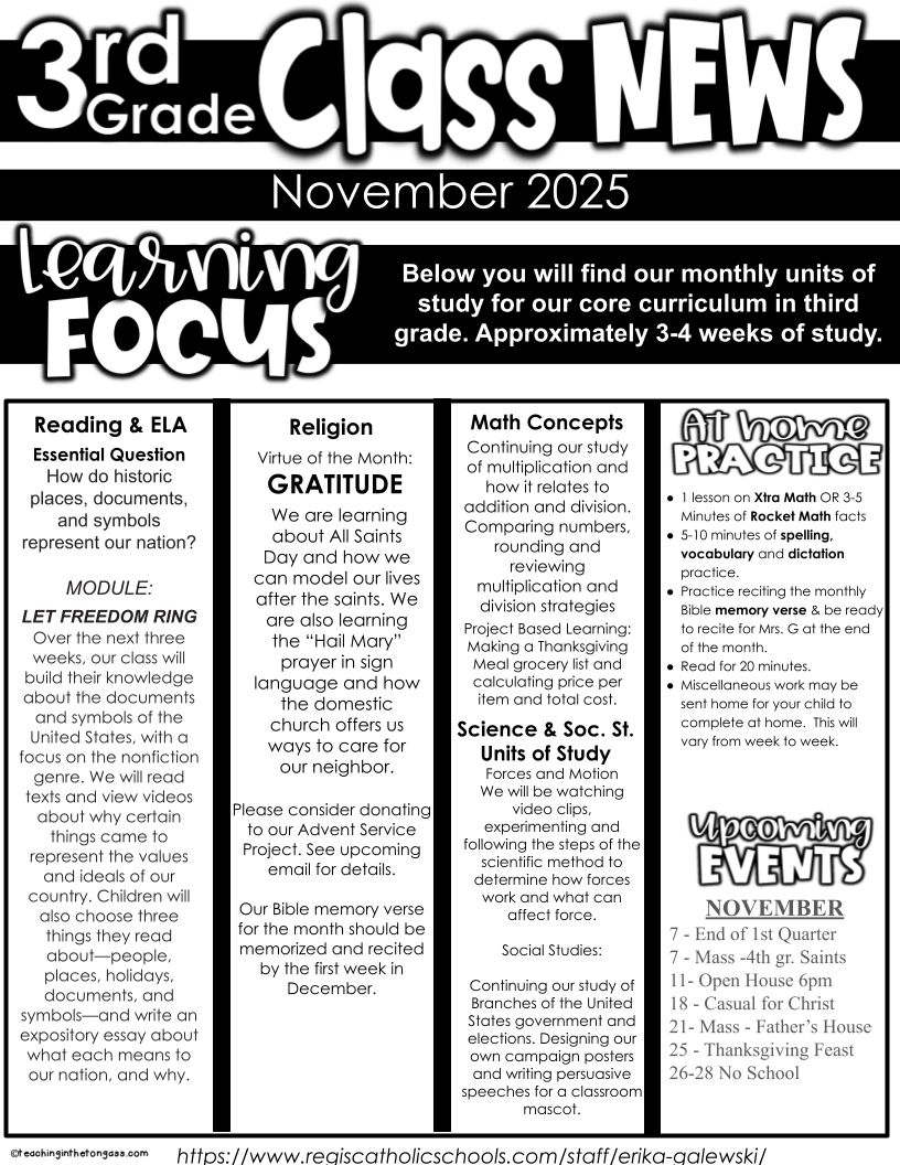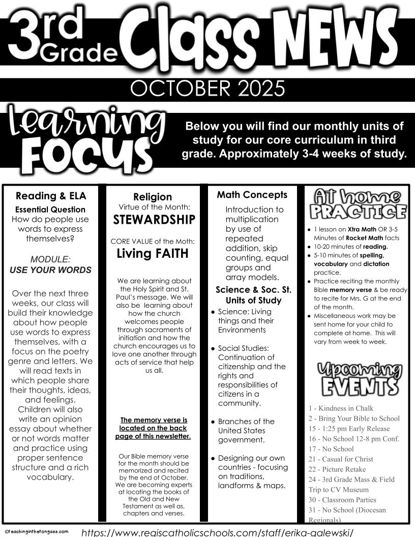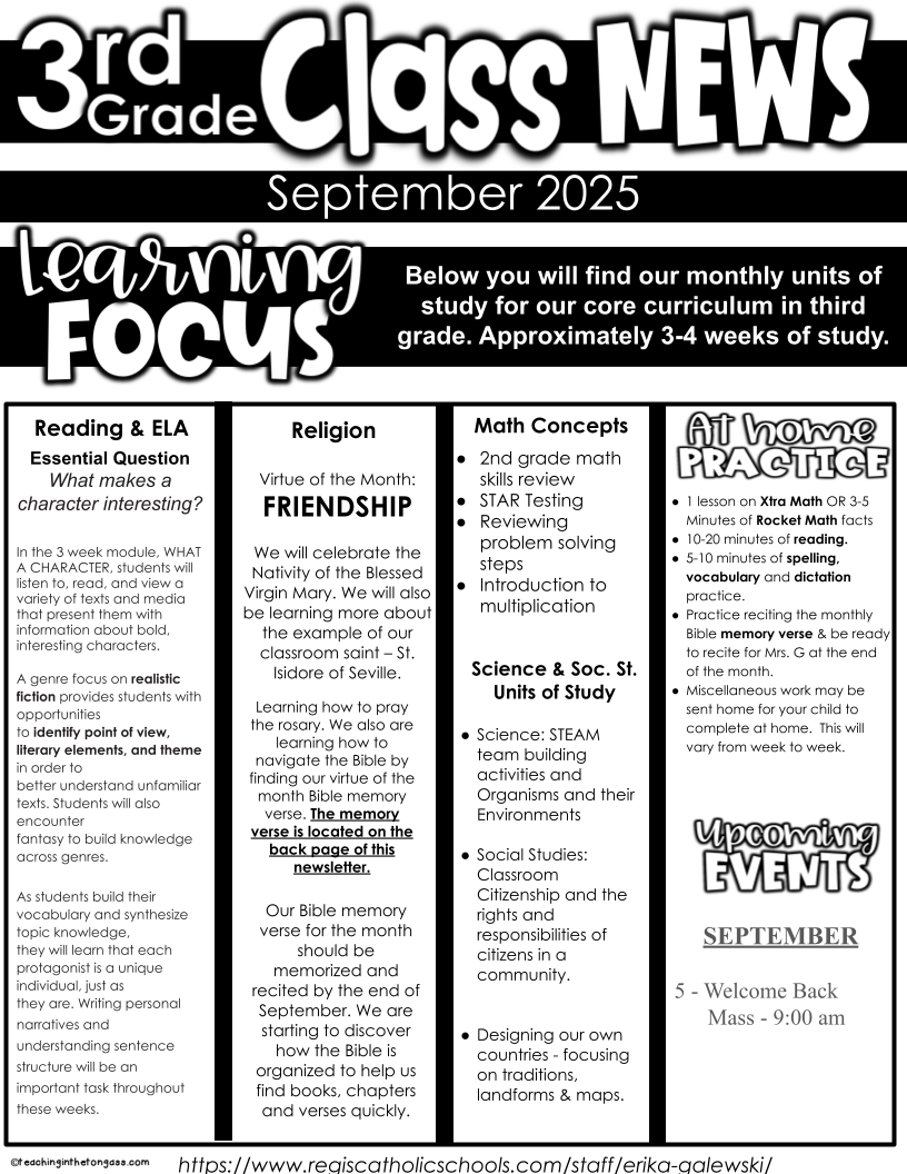Welcome to St. Mary's ThirD GraDE! Please scroll down for monthly newsletters and information.