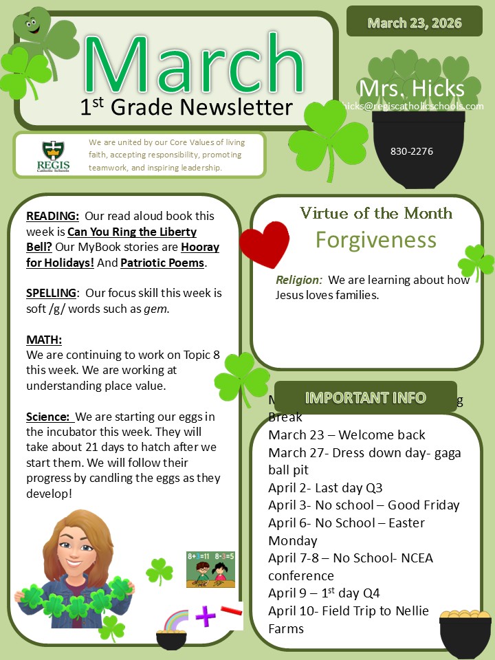 Regis Catholic Schools is dedicated to educating students of all faiths in a Catholic, Christ-centered environment. We are united by Our Core Values of Living Faith, Accepting Responsibility, Promoting Teamwork, Achieving Excellence, and Inspiring Leadership.